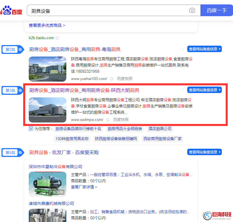 以上就是西安網(wǎng)站優(yōu)化巨??萍继峁┑慕诎咐?,更多關(guān)于“關(guān)鍵詞 ”關(guān)鍵詞 ”廚具設(shè)備”40天到百度首頁(yè)”的相關(guān)效果,請(qǐng)聯(lián)系我們的在線客服,希望對(duì)你有所幫助。